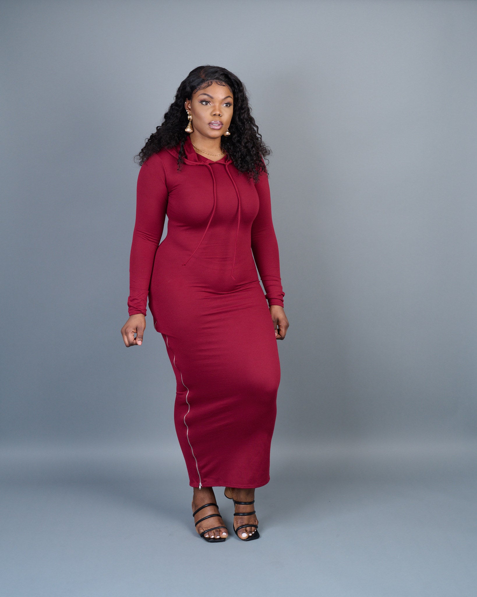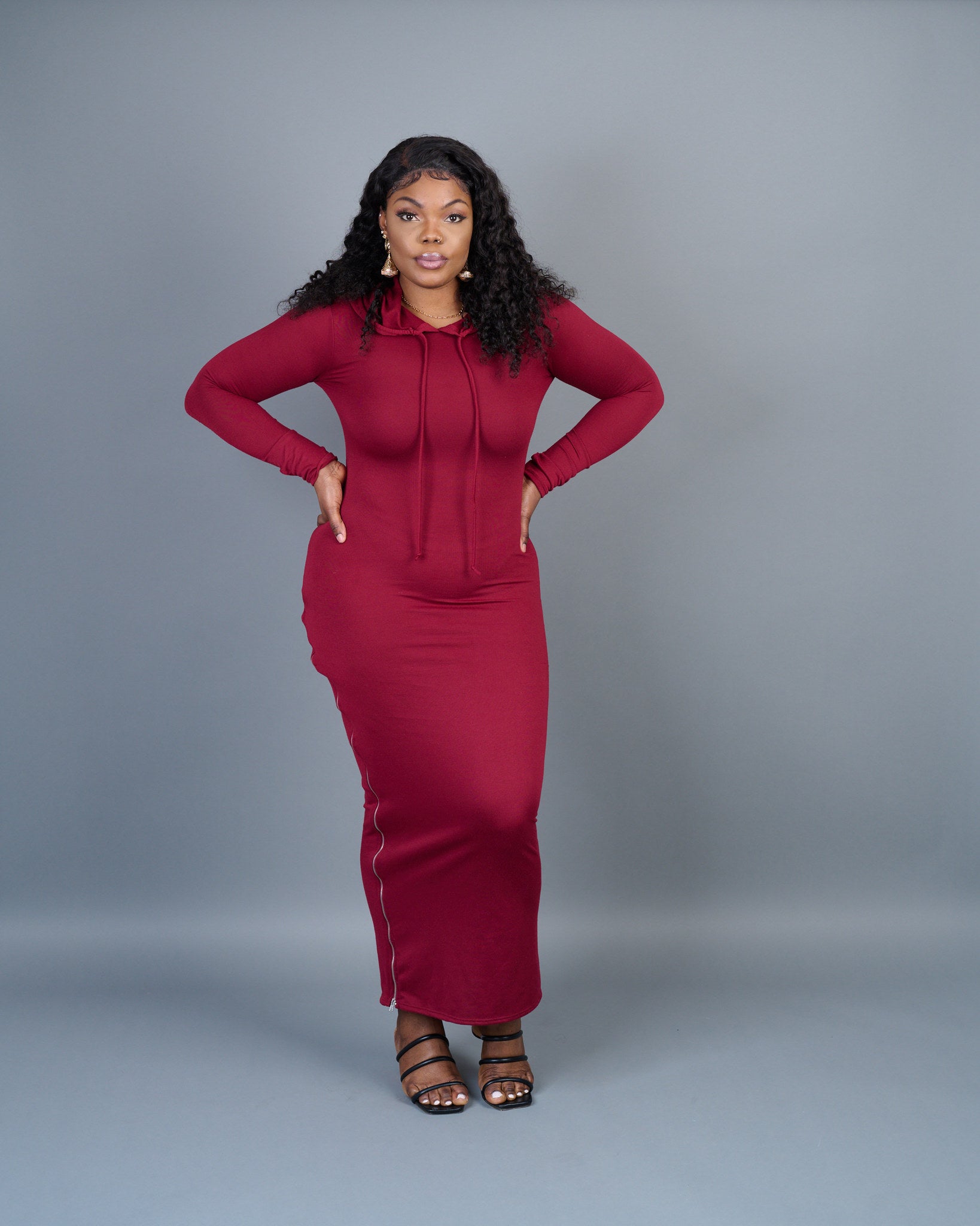 - Terry hooded maxi dress with side slit zipper